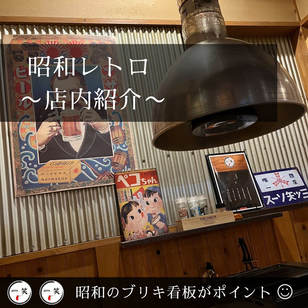 昭和レトロな雰囲気が特徴の一笑では、昭和の時代を感じながら美味しい焼肉を堪能できます。