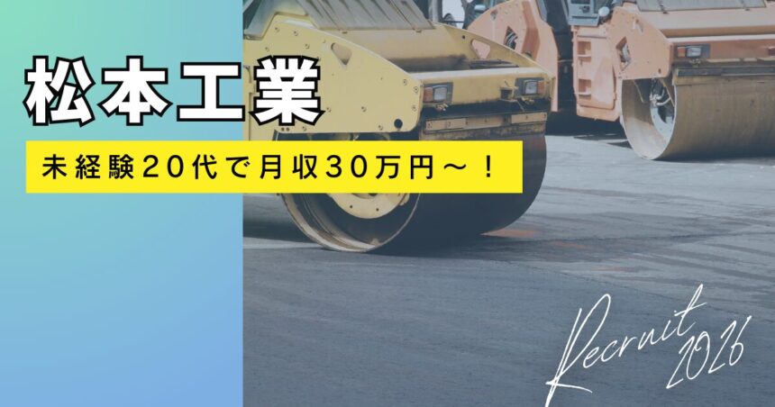 今回は、未経験からでも高収入を目指せる「松本工業」の採用情報をお届けします。 年齢や経験に合わせた3つの給与プランがあり、20代未経験でも月給30万円スタートが可能という、県内でも破格の好条件です。